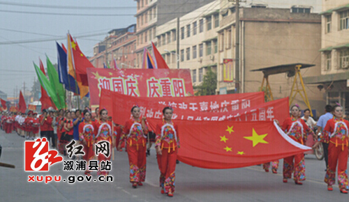 活动前,来自县老年大学、镇老年学校和老年协会等20支表演队伍500余人,敲锣打鼓、整装齐发地沿着城区街道绕行一周,所到之处充满了欢乐、和谐、喜庆的节日气氛。