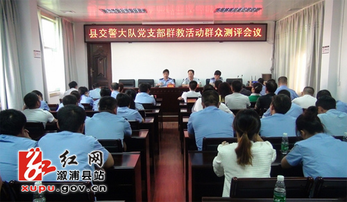 会上,县公安局党委委员、大队长项晓雁做了专题汇报;市委督导组刘维农肯定了交警大队活动成效并做了重要指示。随后,现场发放59份测评表进行公开测评。统计结果显示,交警大队群教活动总体“好”评率98.3%,对解决“四风” 问题特别是群众反映强烈突出问题“好”评率96.6%。