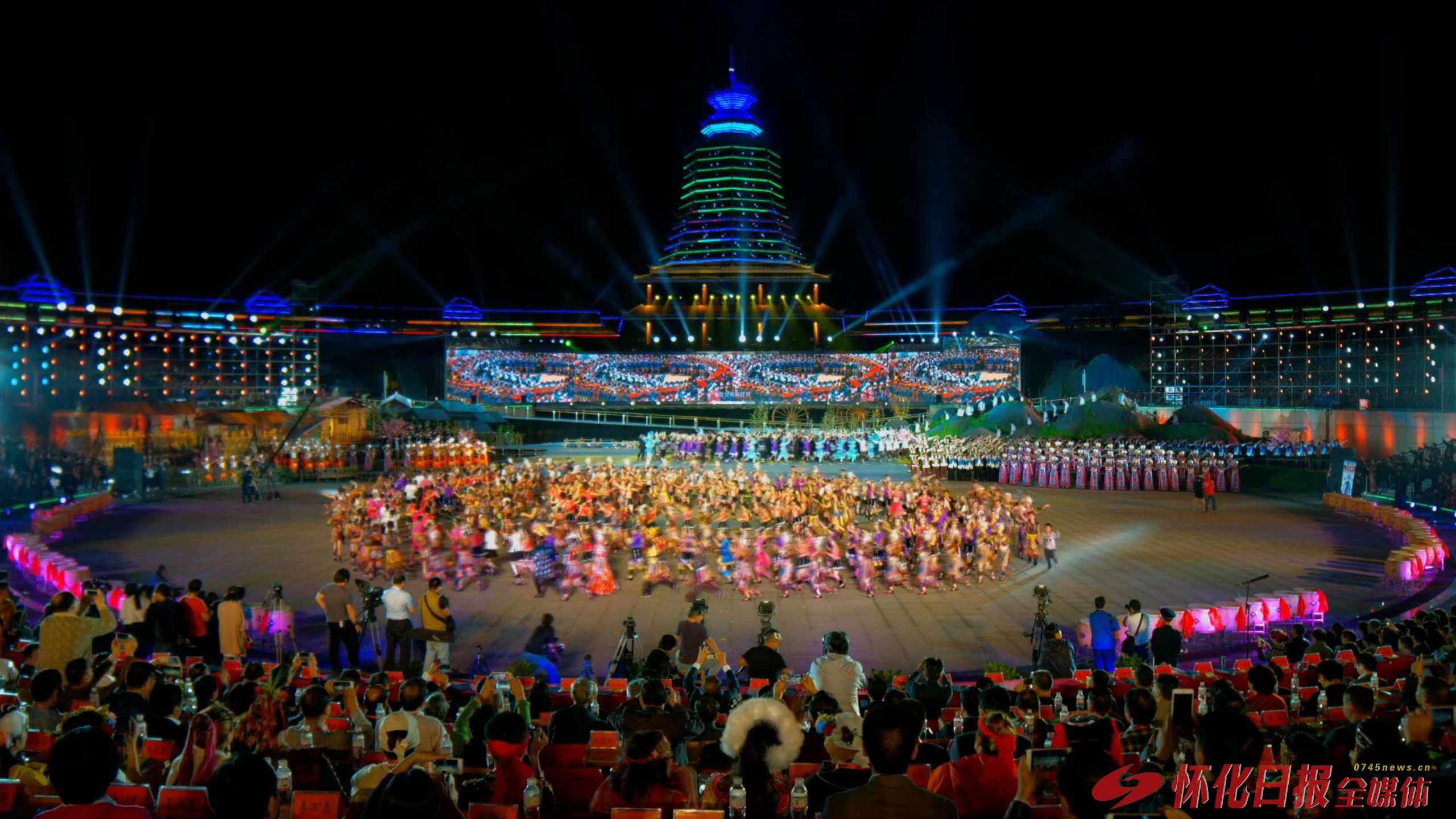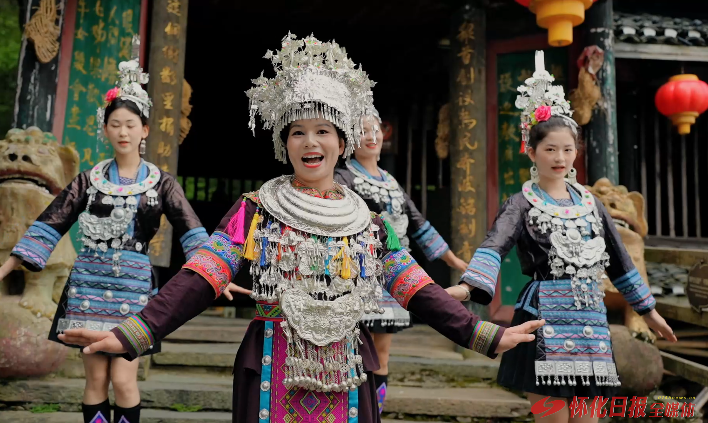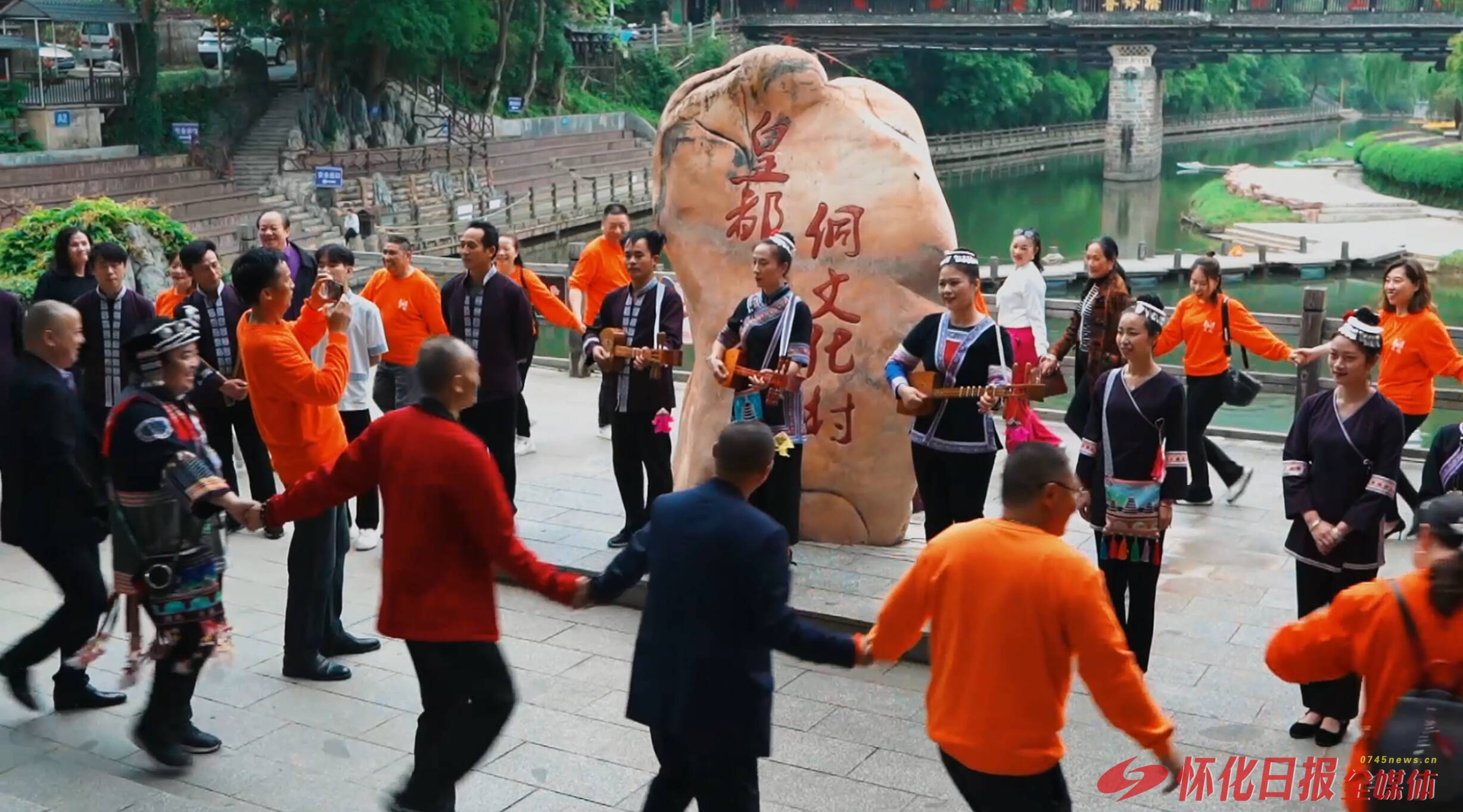 (图为侗族同胞载歌载舞)