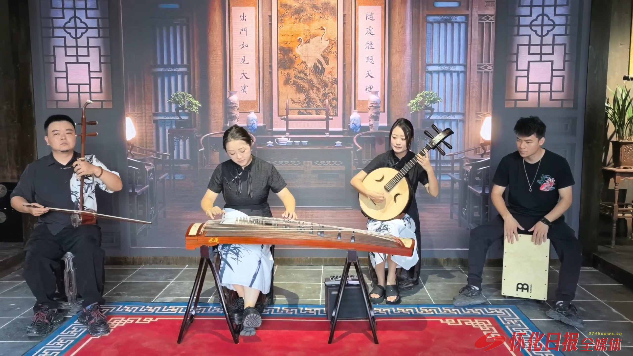 (图为荆坪荆坪古村国乐体验馆内国乐表演)