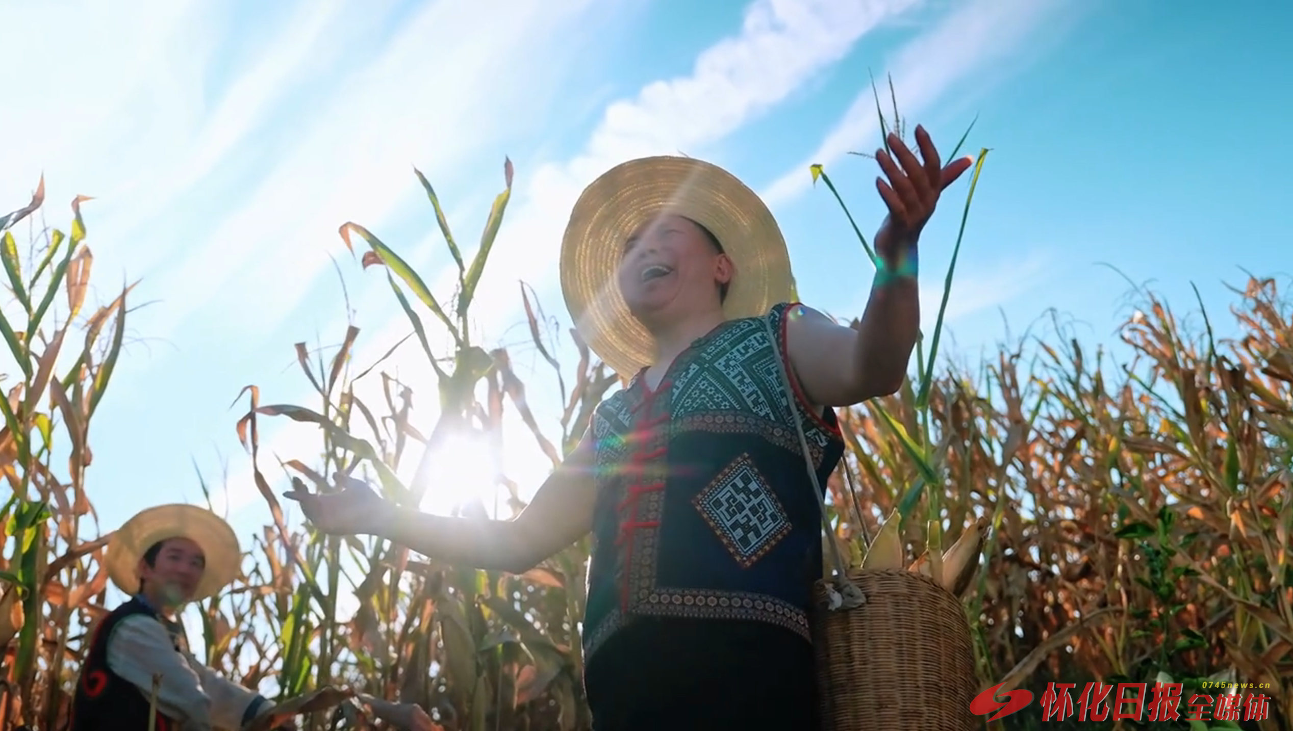 (图为怀化群众在丰收时放声歌唱)