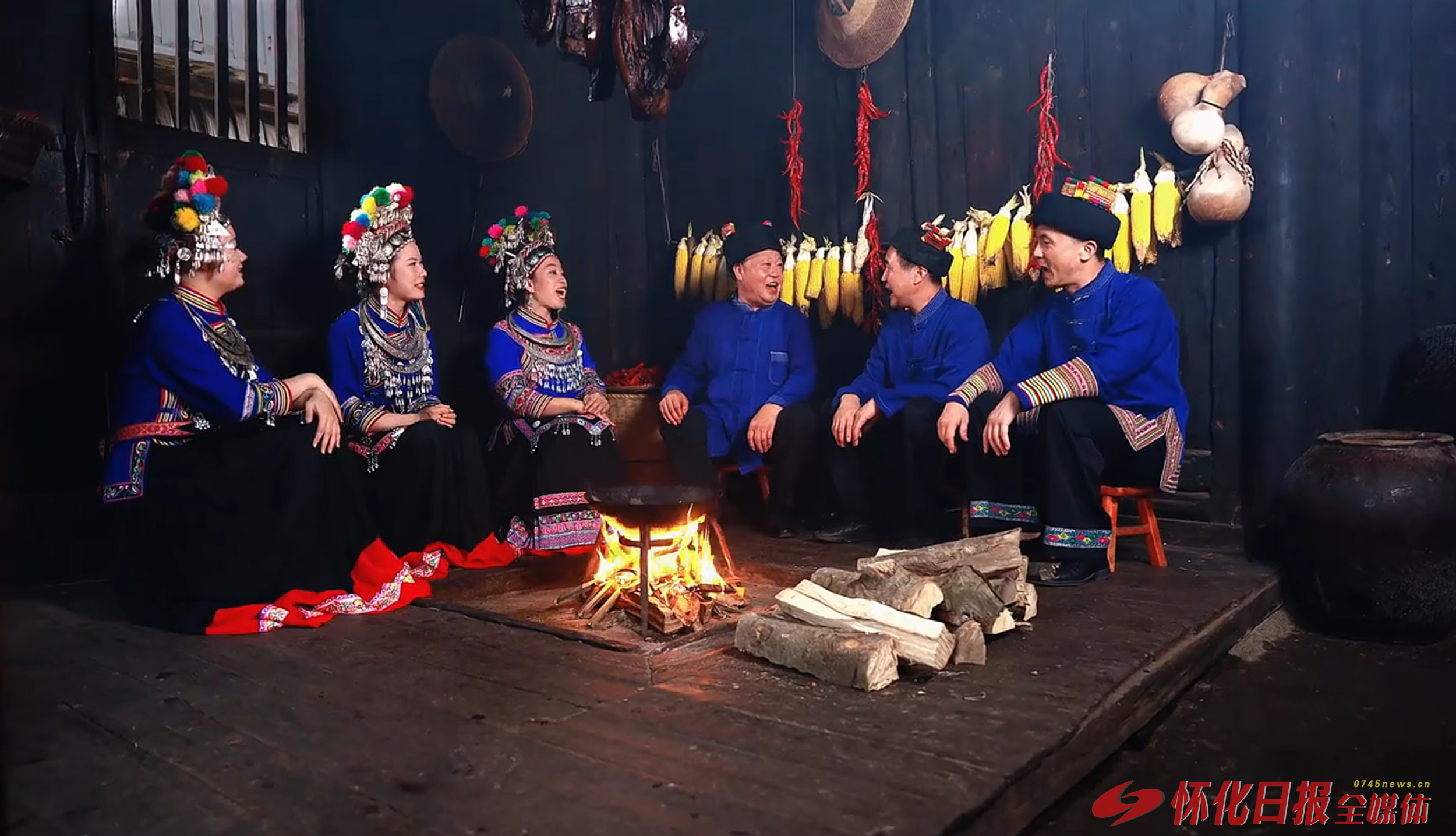 (图为围坐火塘唱歌)