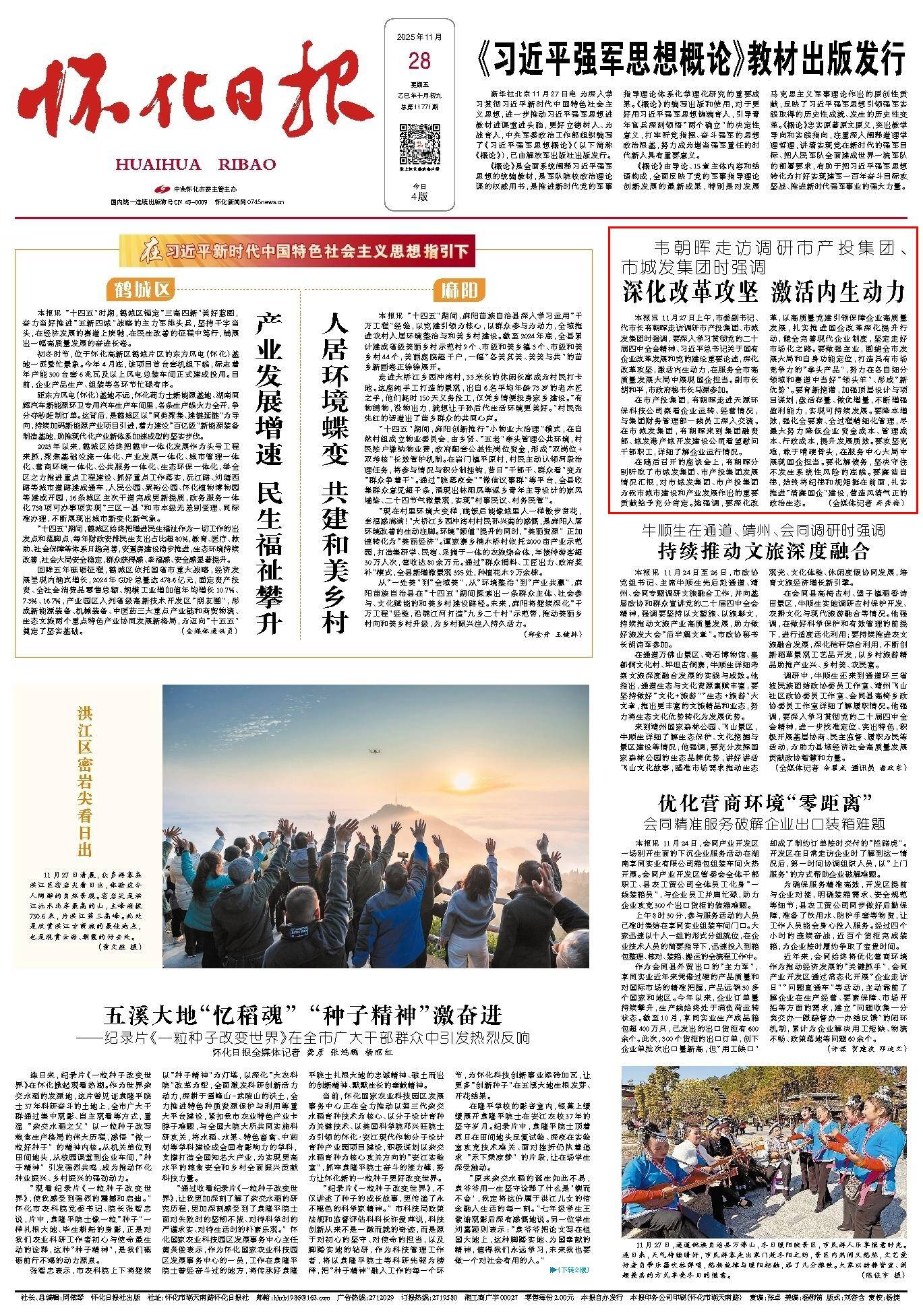 怀化日报全媒体讯11月27日上午,市委副书记、代市长韦朝晖走访调研市产投集团、市城发集团时强调,要深入学习贯彻党的二十届四中全会精神、习近平总书记关于国有企业改革发展和党的建设重要论述,深化改革攻坚,激活内生动力,在服务全市高质量发展大局中展现国企担当。副市长胡和平,市政府秘书长马源参加。